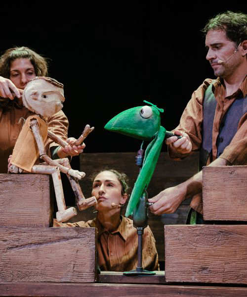 Mar Rojo Teatro presenta una versión de Pinocho de Collodi, acompañada por el grupo de música El Arca de Mozart. Seis trabajadores de una vieja carpintería donde fabrican instrumentos musicales, comienzan a jugar con objetos y materiales, dando forma a la historia. La obra incluye títeres, actores y música en directo. Recomendada para mayores de 4 años.